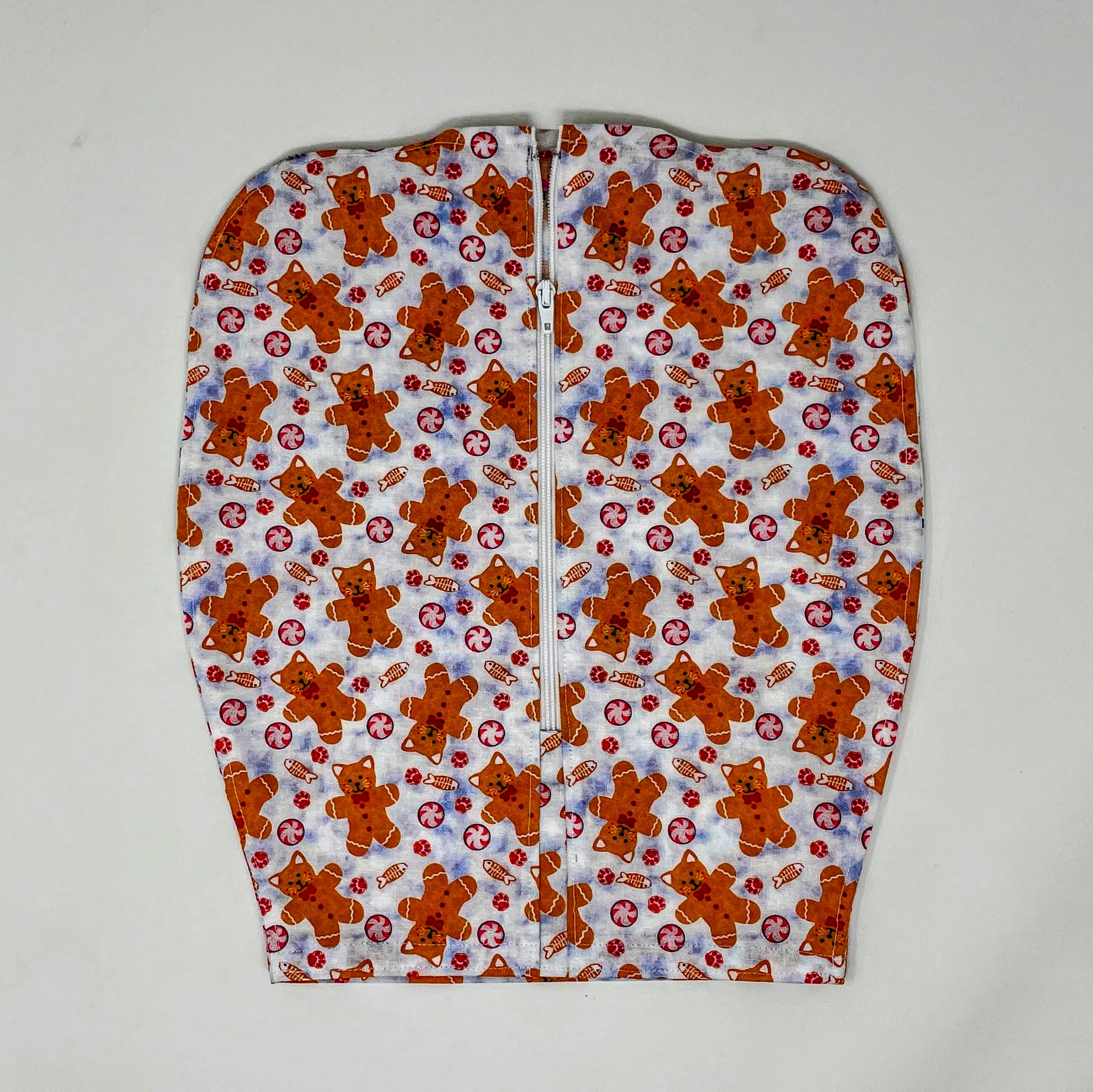 Use on double hook hanger bag styles (check out the pictures of bags the cover fits) Cotton print of gingerbread cats on white background. Machine launder as you would your favorite shirt and hang to dry.