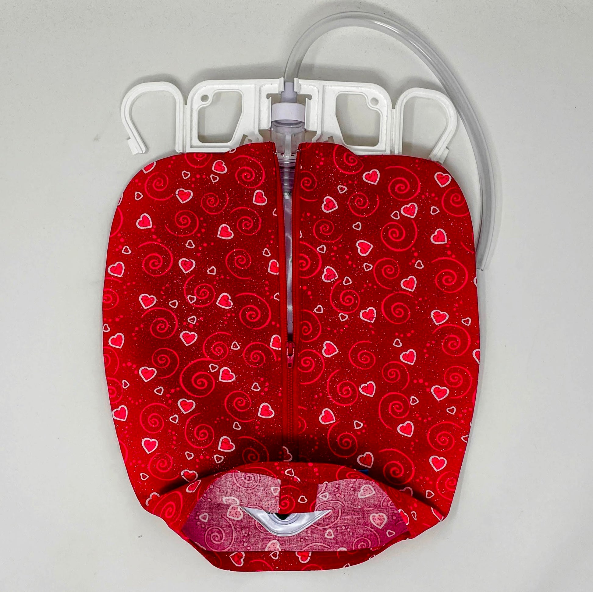 Valentine Heart Catheter Bag Cover: Zippered Closure Cotton Fabric
